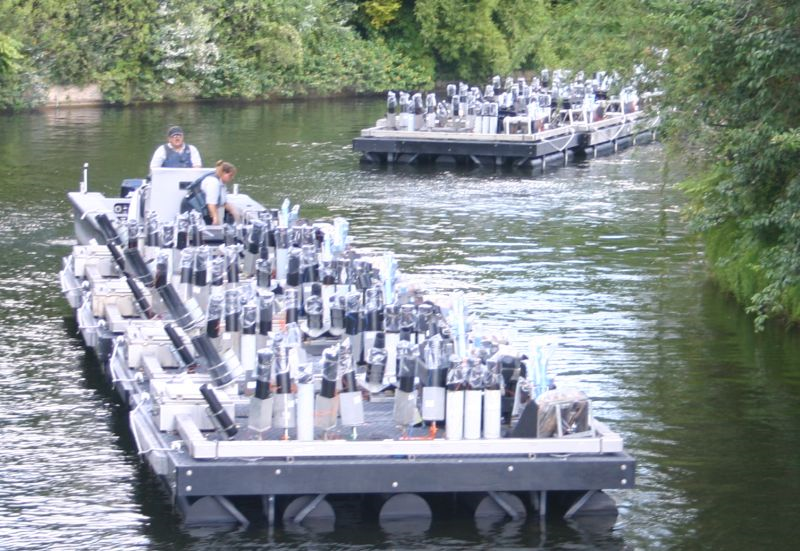 Here are a couple of photos of the EPCOT fireworks barges where you can clearly see the mortar tubes for launching the fireworks.