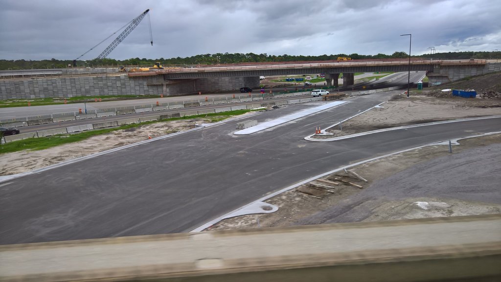 I don't have pictures but the flyover heading north on world drive is nearing completion. Just need to finish the on ramp, connect the off ramp, and finish the concrete walls. Also still waiting for the final beams to complete the southbound flyover before they can continue on that part.