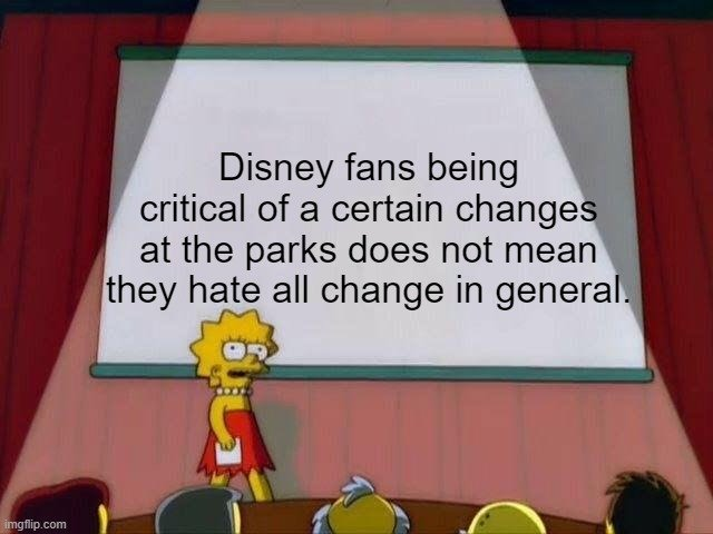 Okay, this needs to be said. I'm so tired of valid criticisms of the direction of the Disney parks being brushed aside by people saying "oh you just don't like change." It really has to stop.